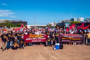 Cerca de mil servidores e servidoras do Ministério da Saúde de todo o país realizaram um grande ato em ...