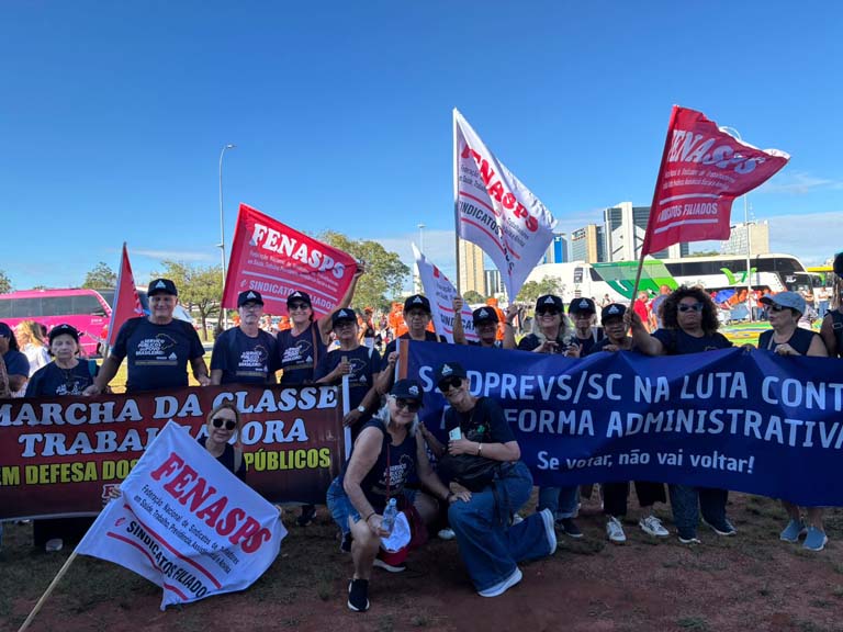 REPRESENTANTES DA FENASPS E SINDICATOS DA BASE PRESENTE NA MARCHA NACIONAL DA CLASSE TRABALHADORA EM BRASÍLIA 15/4