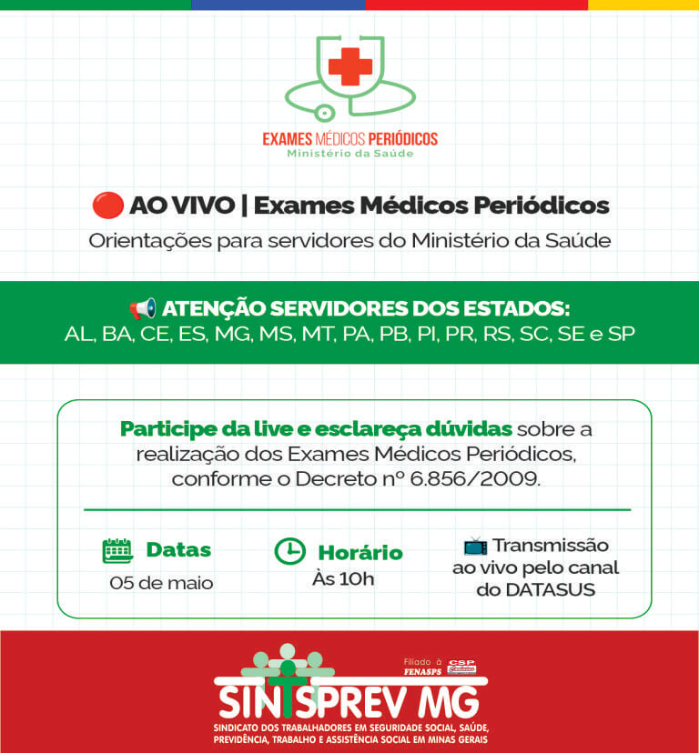 AO VIVO, DIA 05/05 ÀS 10H – LIVE ORIENTAÇÕES EXAMES MÉDICOS PERIÓDICOS