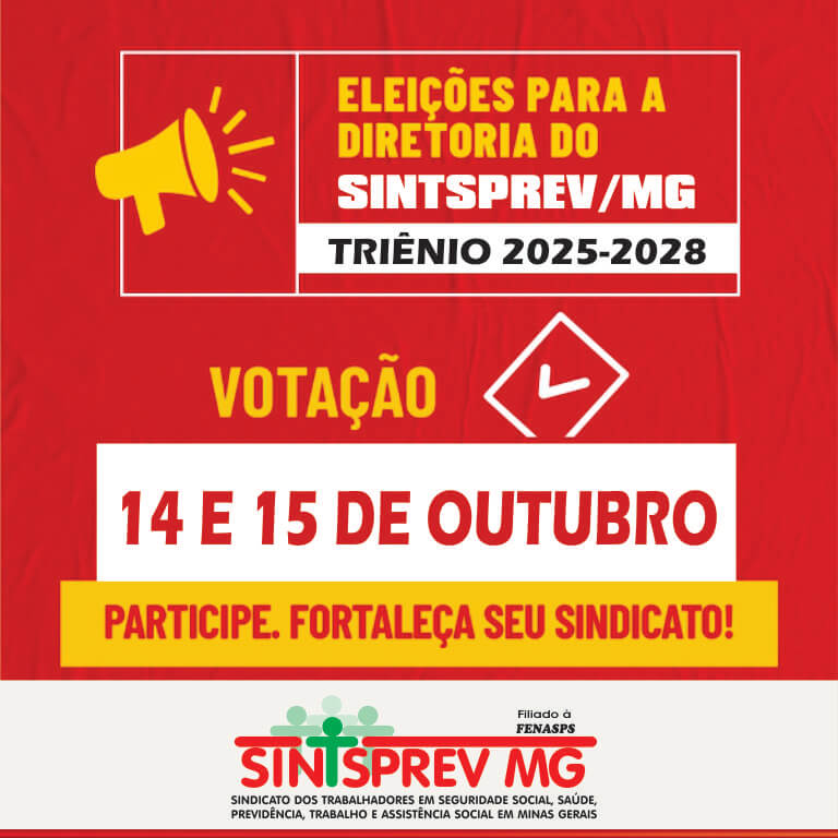 Encerrou na última 6ª feira, 19 de setembro o prazo para registro de chapas concorrentes ao pleito sindical do triênio 2025/2028 do Sindicato dos Trabalhadores em Seguridade Social, Saúde, Previdência, Trabalho e Assistência Social em Minas Gerais – SINTSPREV/MG.