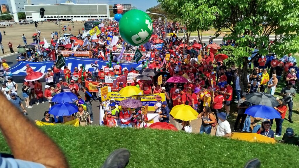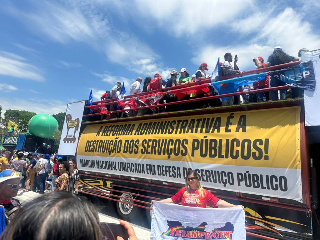 Cerca de 15 mil servidores públicos federais, estaduais e municipais, vindos dos 26 estados do país e o Distrito Federal, participaram nesta terça-feira (29/10) do Ato Nacional em Defesa do Serviço Público e contra a Reforma Administrativa (PEC 38/2025), em Brasília.