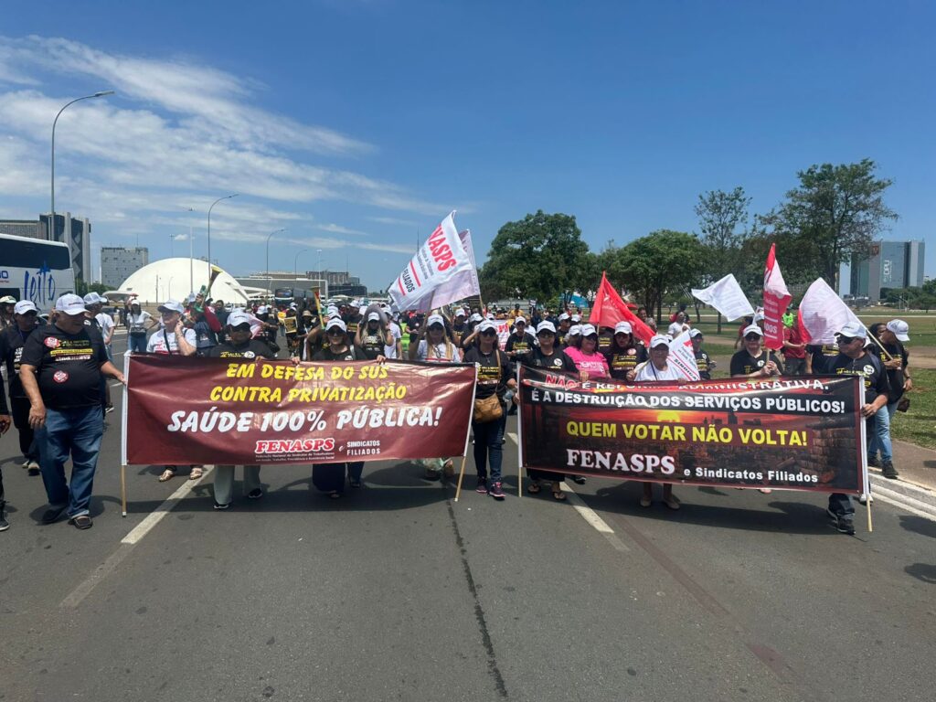 Da base da FENASPS e das oposições, mais de 300 militantes de 14 estados marcaram presença na capital federal, reforçando a luta unificada dos trabalhadores e trabalhadoras do serviço público.