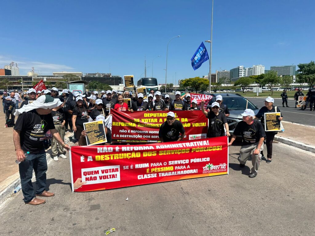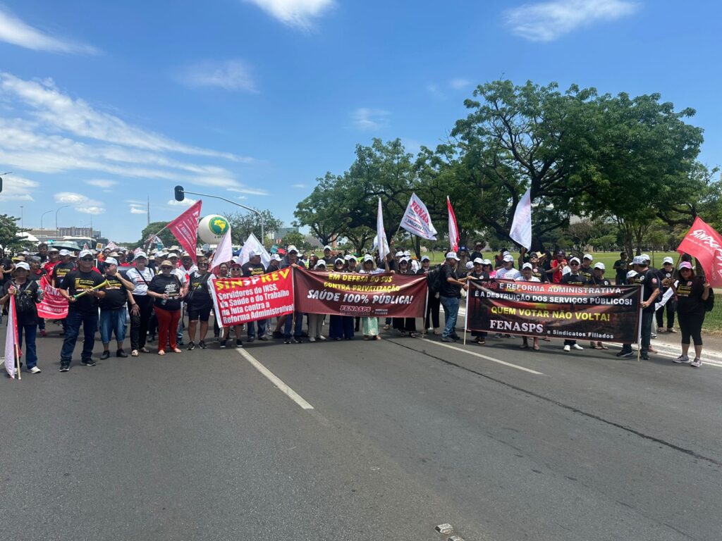 Militantes da base da FENASPS participam de ato unificado com servidores públicos das três esferas de governo contra a reforma administrativa em Brasília