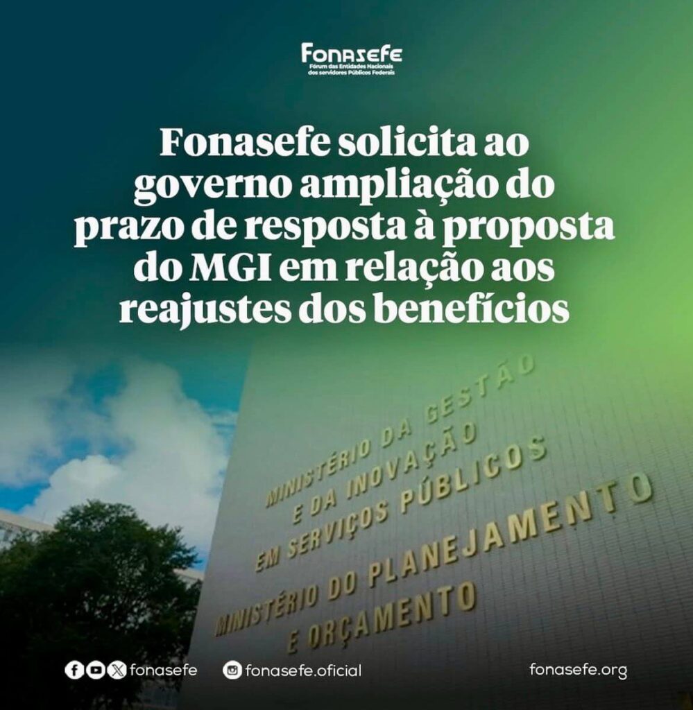 O Fonasefe solicitou a prorrogação do prazo para dar uma devolutiva ao governo sobre a proposta de reajuste dos benefícios, apresentada na Mesa de Negociação no dia 22 de outubro.