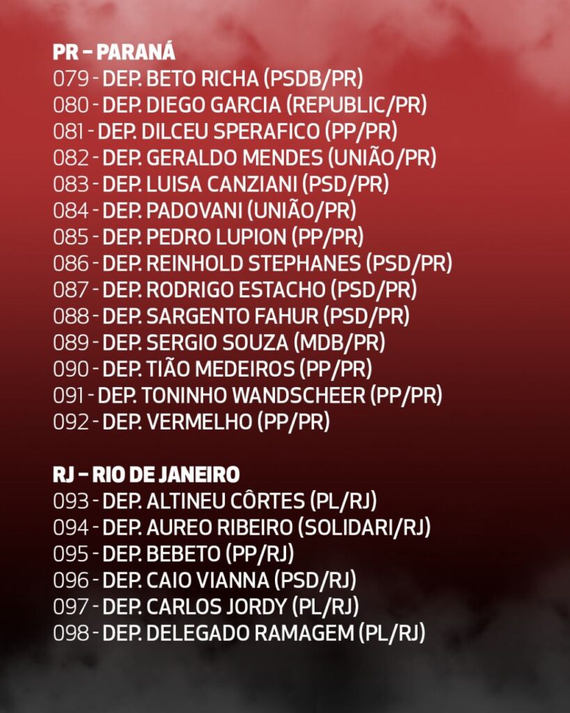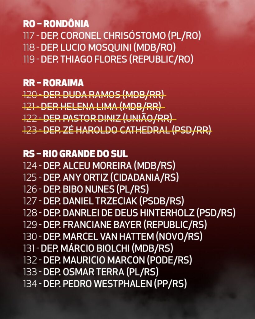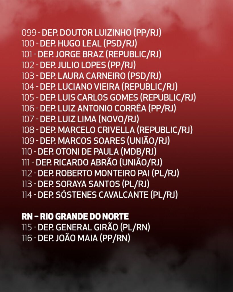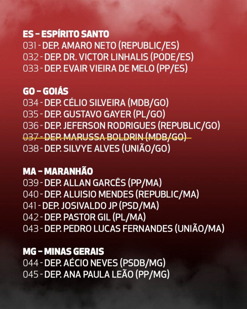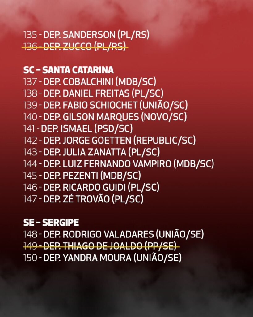 (*) Além dos 16 nomes riscados nessa lista, hoje tivemos a retirada também da assinatura do Adail Filho (Republicano/AM).
