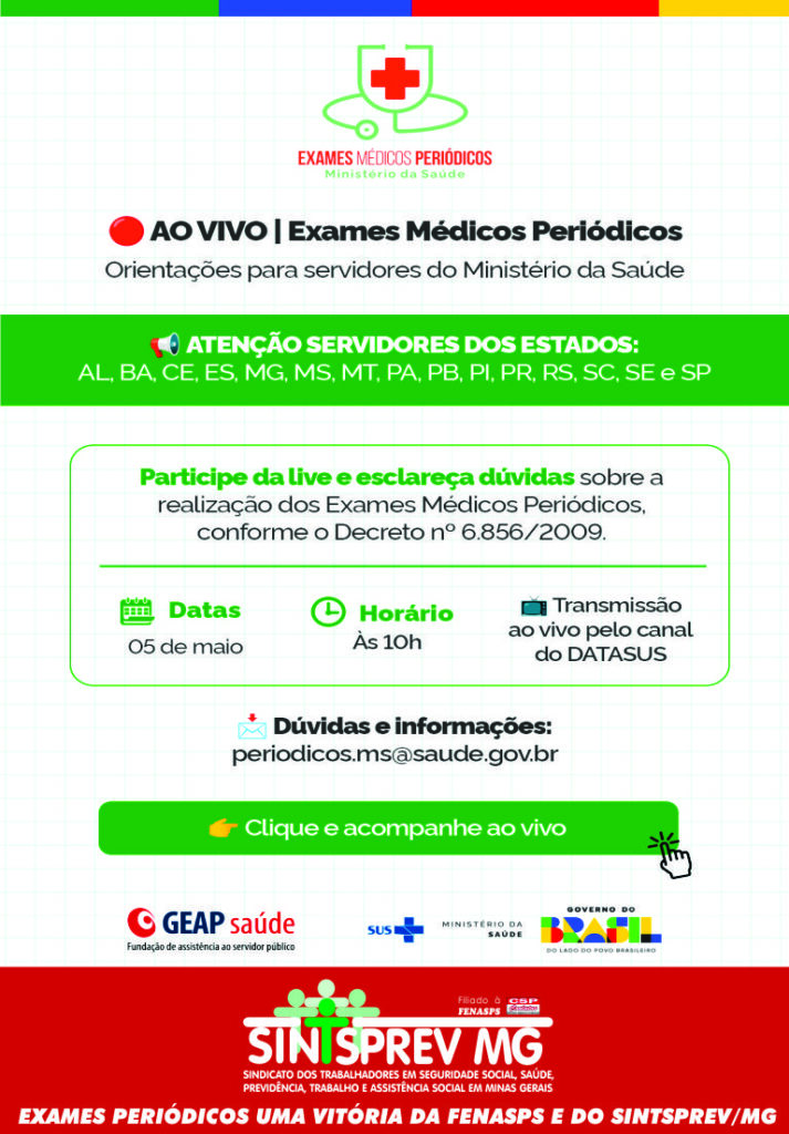 EXAMES PERIÓDICOS UMA VITÓRIA DA FENASPS E DO SINTSPREV/MG