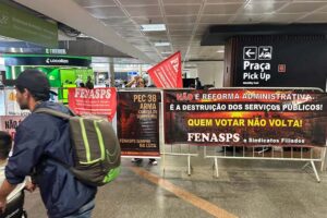 A FENASPS participou nesta terça-feira (11/11) de mais um ato nacional no Aeroporto de Brasília, reafirmando a luta contra a reforma administrativa — a PEC 38, que representa um ataque frontal aos direitos do funcionalismo público e aos serviços ... leia mais